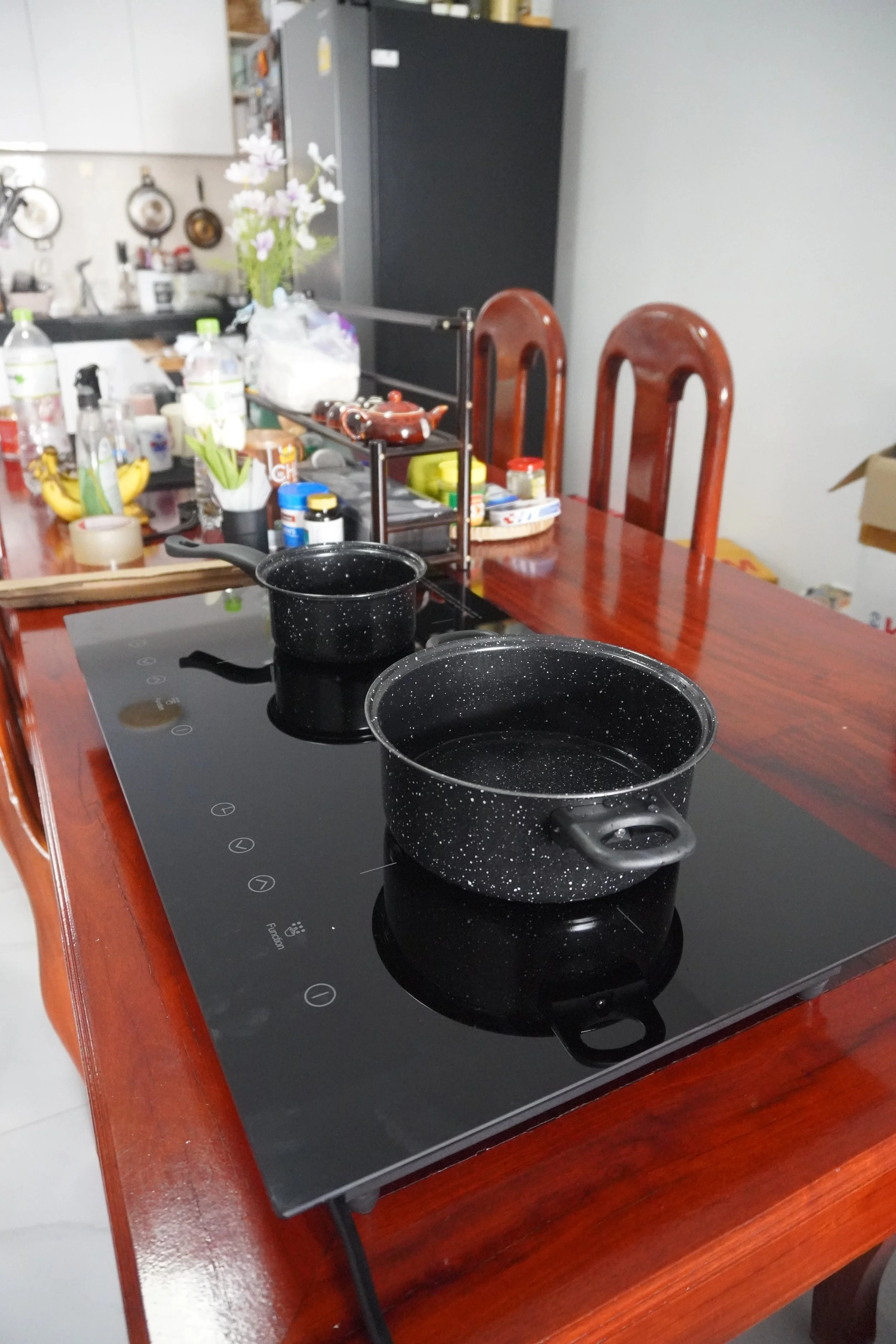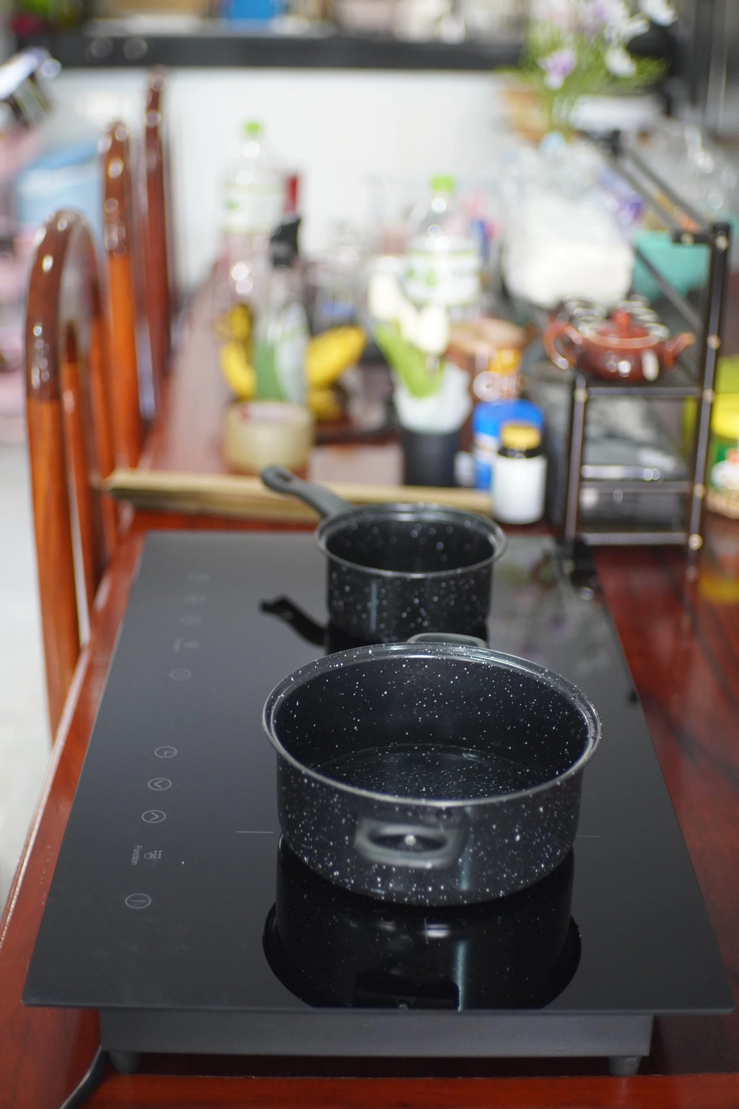 ពីហានិភ័យនៃការប្រើប្រាស់ហ្គាស់ ឬ អុស។ ចង្រ្កាននេះបាញ់កម្ដៅទៅឆ្នាំងអុីណុក ឬ ដែកផ្ទាល់ ដោយប្រើបច្ចេកវិទ្យា Electro Magnetic Induction។